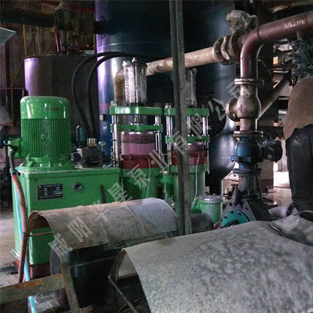 采用一臺YB400__120陶瓷柱塞泥漿泵為6臺800平方米隔膜壓濾機進料。設定壓力位6.5公斤,開始進料時陶瓷柱塞運行頻次大,當達到設定壓力時陶瓷柱塞頻次逐漸減少即電機轉速變慢電機更節能,根據濾布的新舊及物料濃度的變化進料時間為30—60分鐘初始流量為120個立方逐漸減少,由于物料的特性含沙及強腐蝕性對柱塞泵4個單向閥內的橡膠閥片及陶瓷柱塞的橡膠密封損傷較大,4個橡膠閥片為1個月更換一次,橡膠密封為20天更換一次,每次費用為4000—5000元,這樣年維修費就為60000元左右。每次維修1—2人時間為1—2小時。
